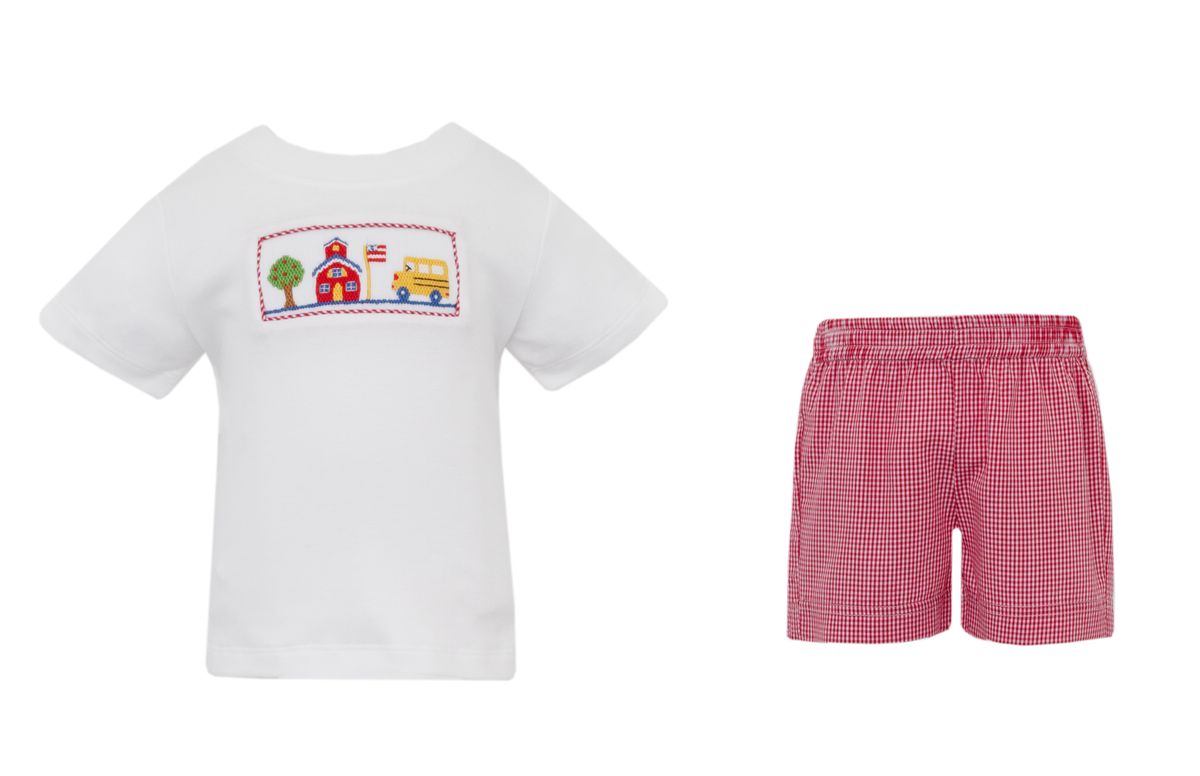 BACK TO SCHOOL BOY´S - Red gingham boy's short set w/ white knit T-shirt