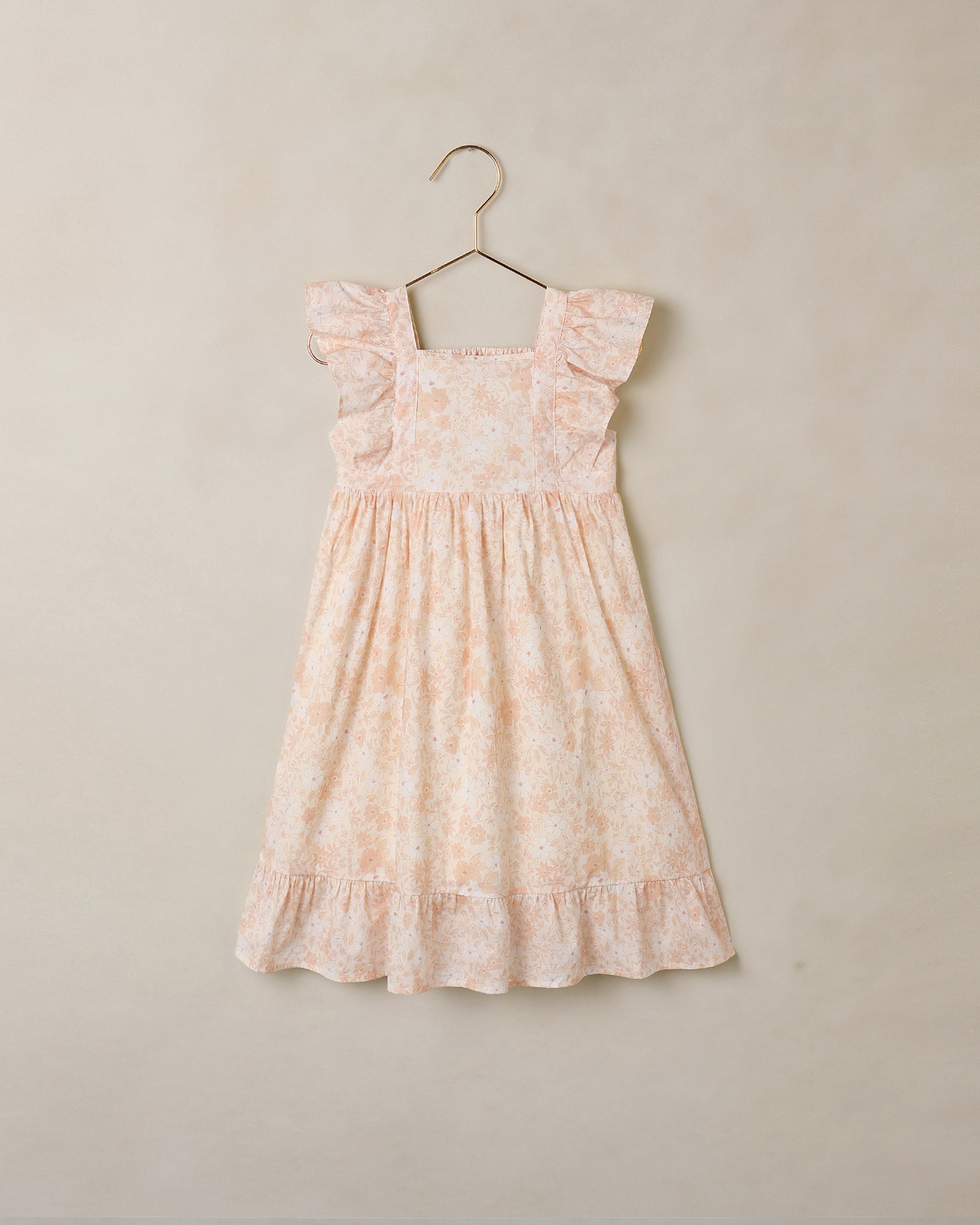 Our sweet Lucy Dress features dainty flutter sleeves, a full single tiered skirt, and an elastic waistband at the back.
