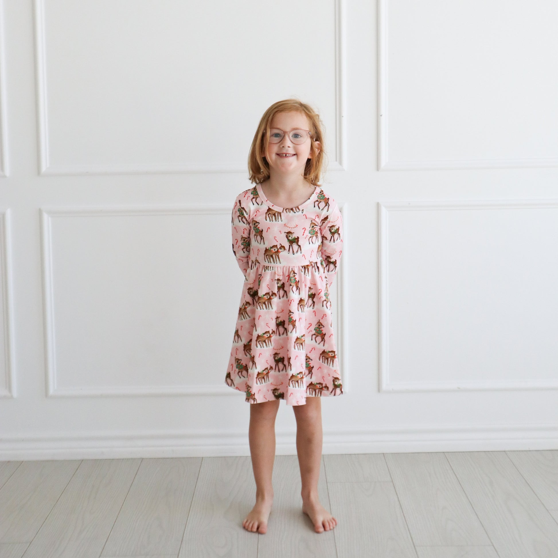 The Morgan Dress is a playful pink twirl dress perfect for little girls during the holiday season. Its pastel pink color and comfortable fit make it ideal for both dressing up at festive events and dressing down for everyday wear. This versatile dress allows your child to move freely and enjoy every moment, whether at a Christmas party or casual outing. Crafted for style and ease, the Morgan Dress is a charming addition to any young wardrobe.