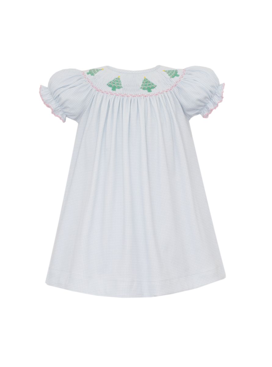 This soft blue check knit bishop dress features delicate smocking, perfect for little girls. Its gentle fabric ensures comfort while the classic design offers a timeless look, making it ideal for festive occasions or everyday wear. The bishop style adds an elegant silhouette that allows freedom of movement, combining style and practicality effortlessly.